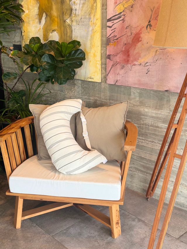 El diseño incluye una hebilla ajustable que te permite fijar el almohadón para mayor estabilidad. Esto resulta ideal no solo para amamantar en una posición cómoda, evitando lesiones o dolores en la región lumbar, sino también para dar el pecho de pie o sostener a tu bebé mientras lo dormís. ¡Tu espalda te lo va a agradecer!